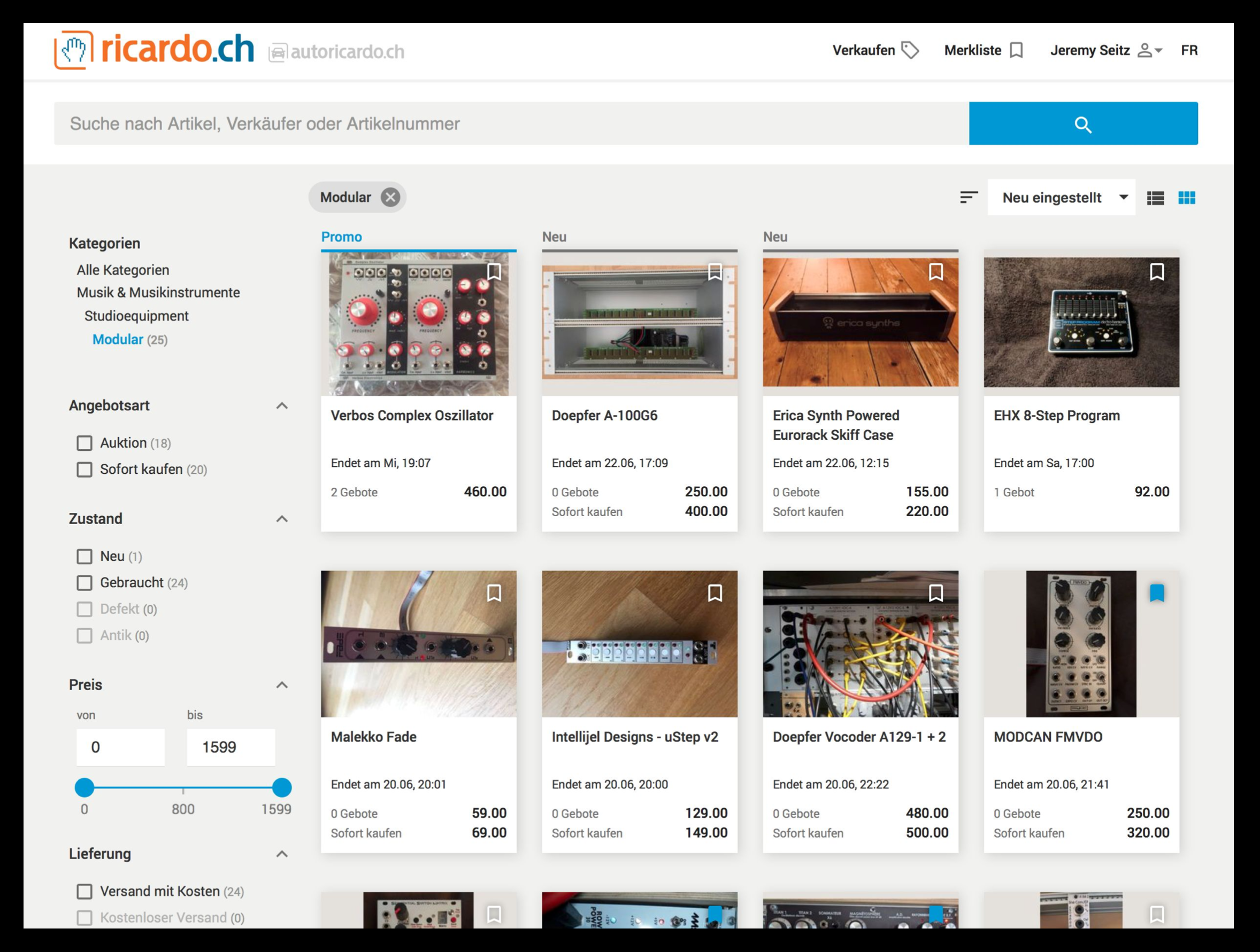 I soon became aware that modular synth nerds tend to buy and sell modules a lot. In fact, it seemed that out of every four modules purchased, only one might last a year in someone's setup. This is partially because of ADHD - once you figure out how something works, it's boring and you want something new. Manufacturers know this, because they release new modules so frequently and people buy them. The used modules show up on second-hand sites, and since I was working at Ricardo.ch, this was perfect.